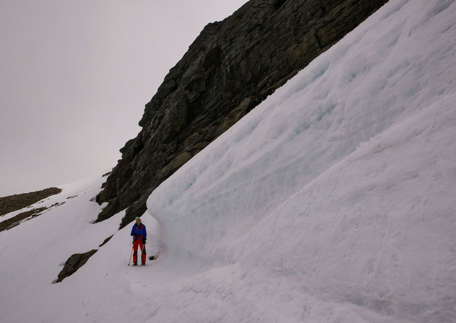 A large crown wall from an avalanche earlier in the season. Logged at 21 February 2021.