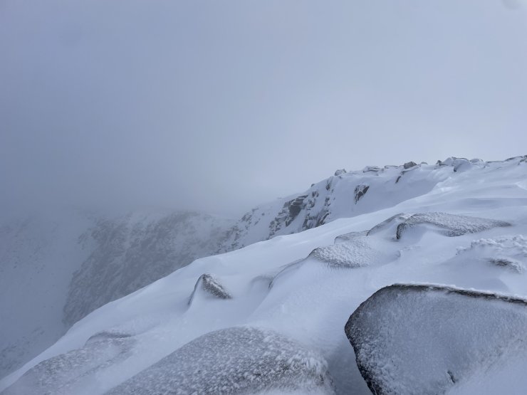 The freezing level continues to hover around the highest summits in the Northern Cairngorms. Above the 1000 metre contour line, it definitely feels like winter with a variety of underfoot conditions but as a general rule, snowpack stability is good with the exception of a few locations as highlighted in the Avalanche Report. A better day for observations today – photos will give a better idea of general snow cover.