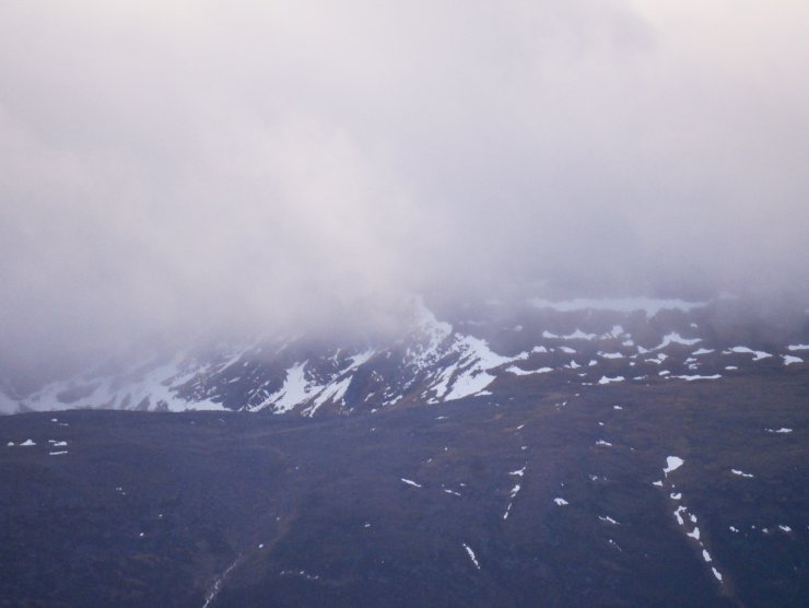 A fleeting glimpse of Coire an Lochain on Braeriach. This north facing coire is a cold hole and often holds snow when conditions are absent elsewhere.