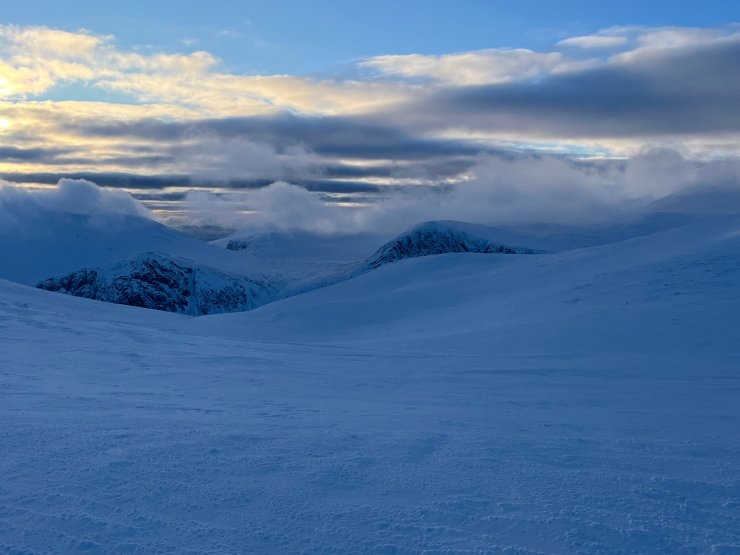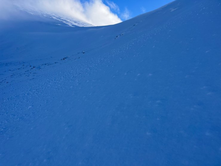 (Above) Small amounts of drifting snow being blown into the Northerly aspect of Coire an t-Sneachda.