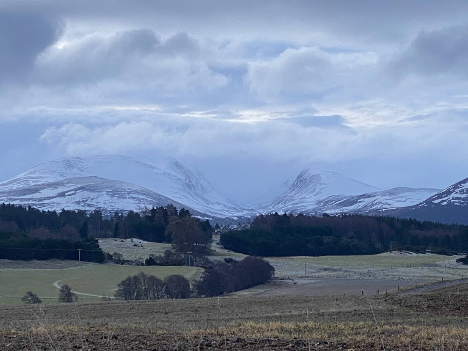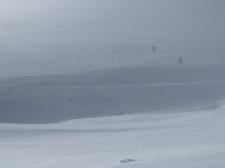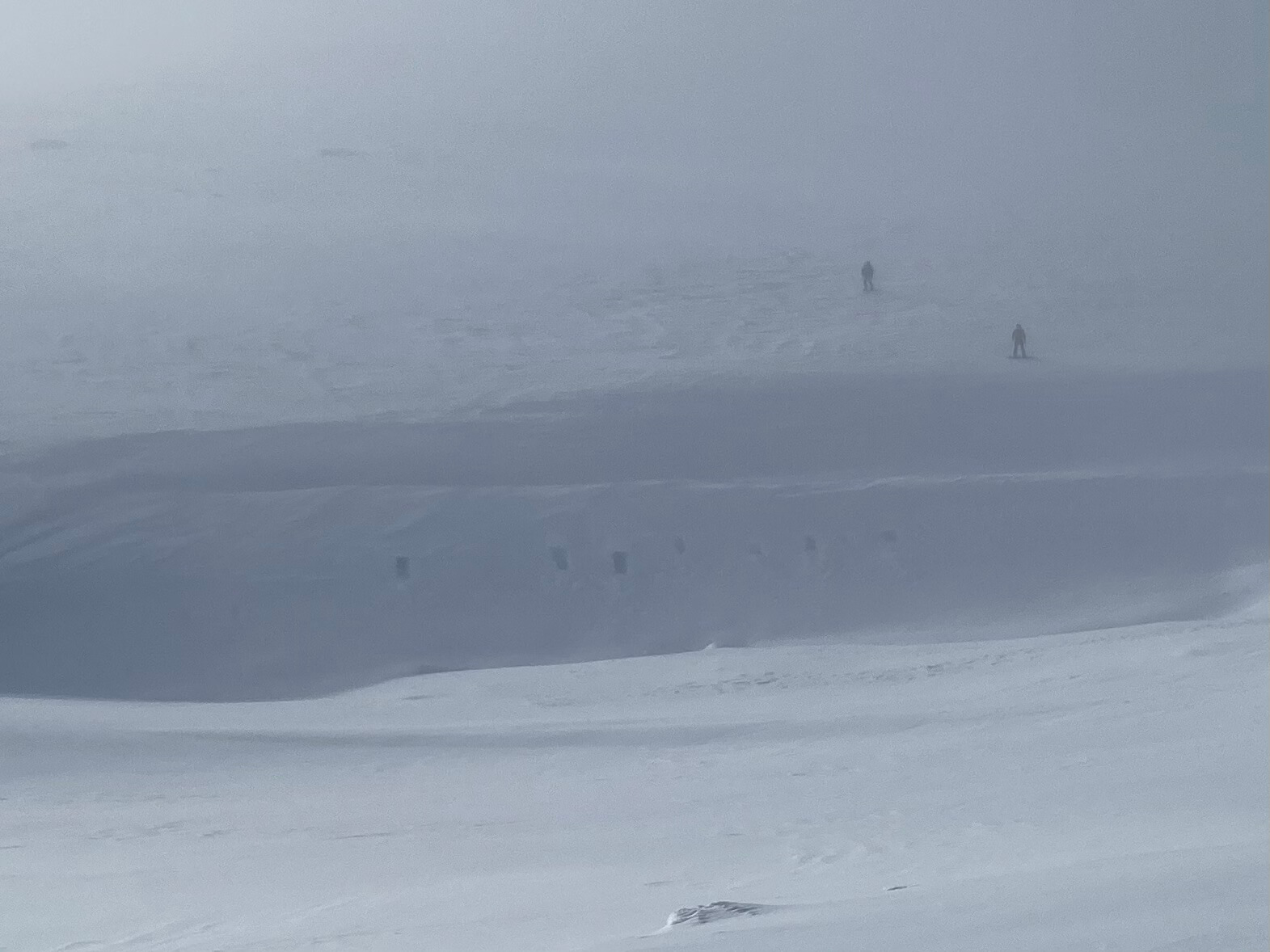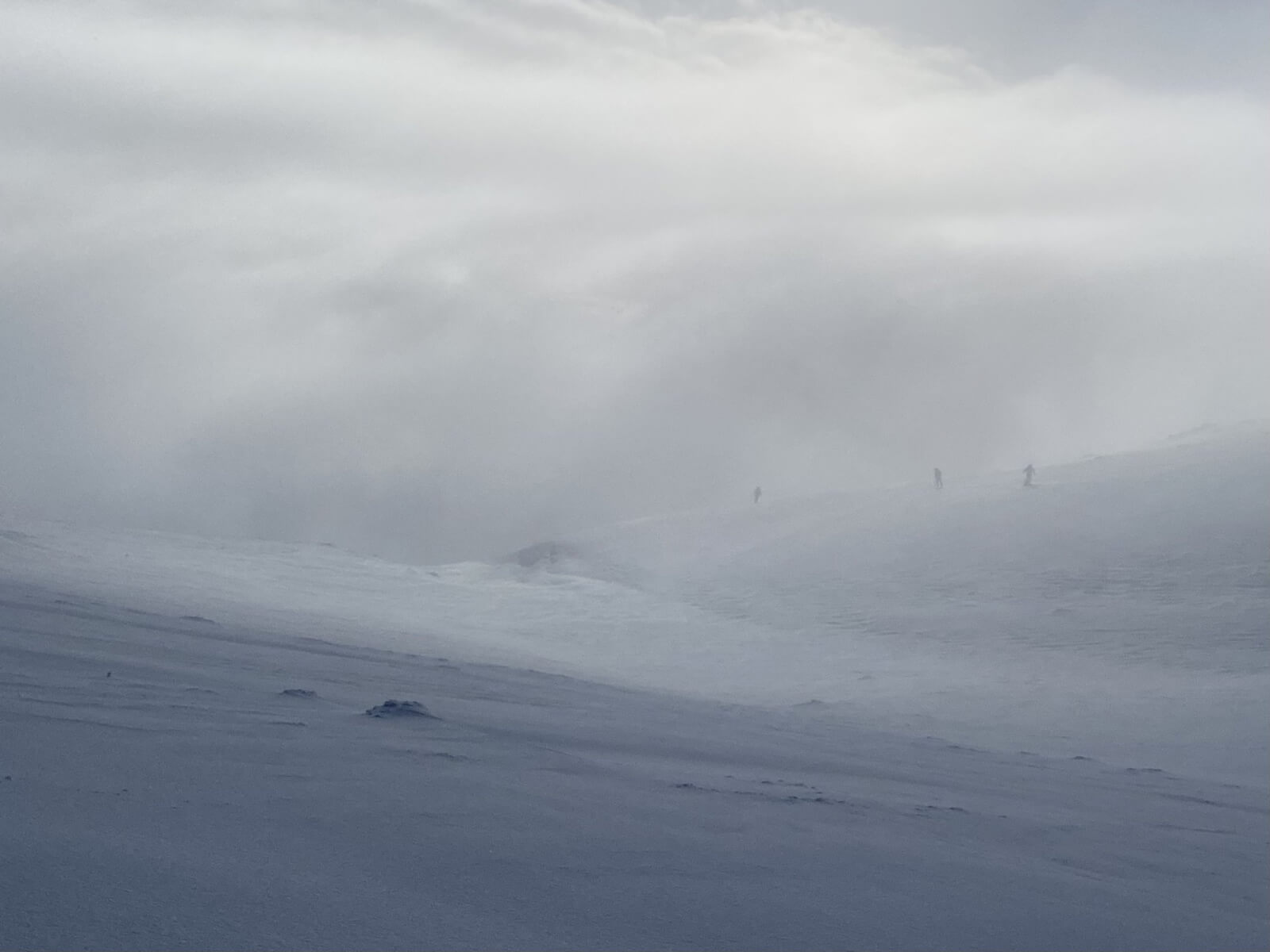 It almost cleared, this is looking South from the Southern slopes of Cnap Coire na Spreidhe. Notice the three off piste skiers in the distance.