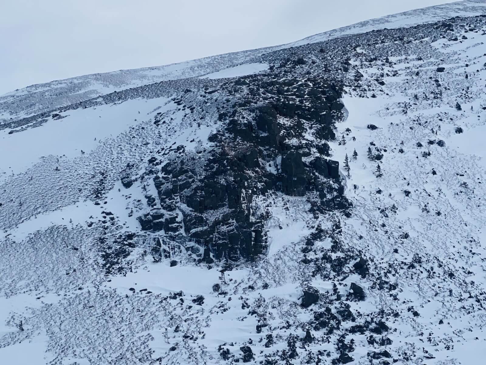 Dribbles of ice on the Ciste crag.