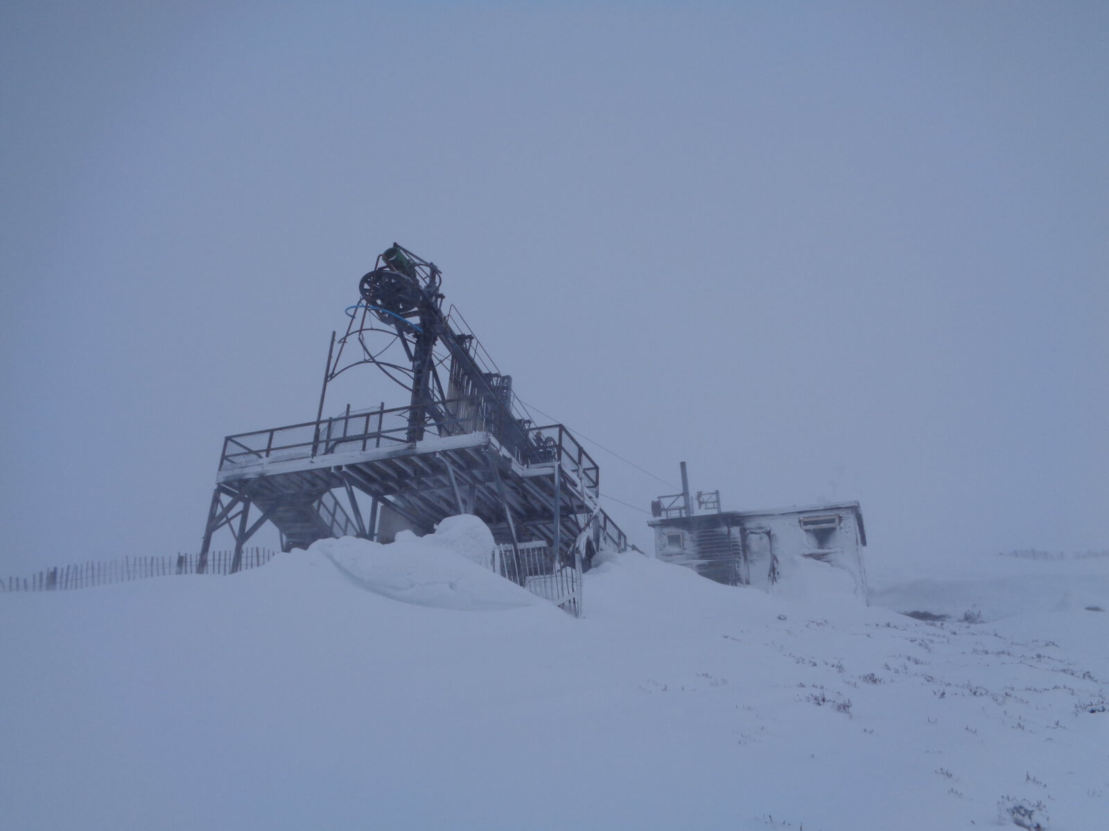 Deep drifts on the leeward side of ski infrastructure. Here the West Wall Poma at 720m.