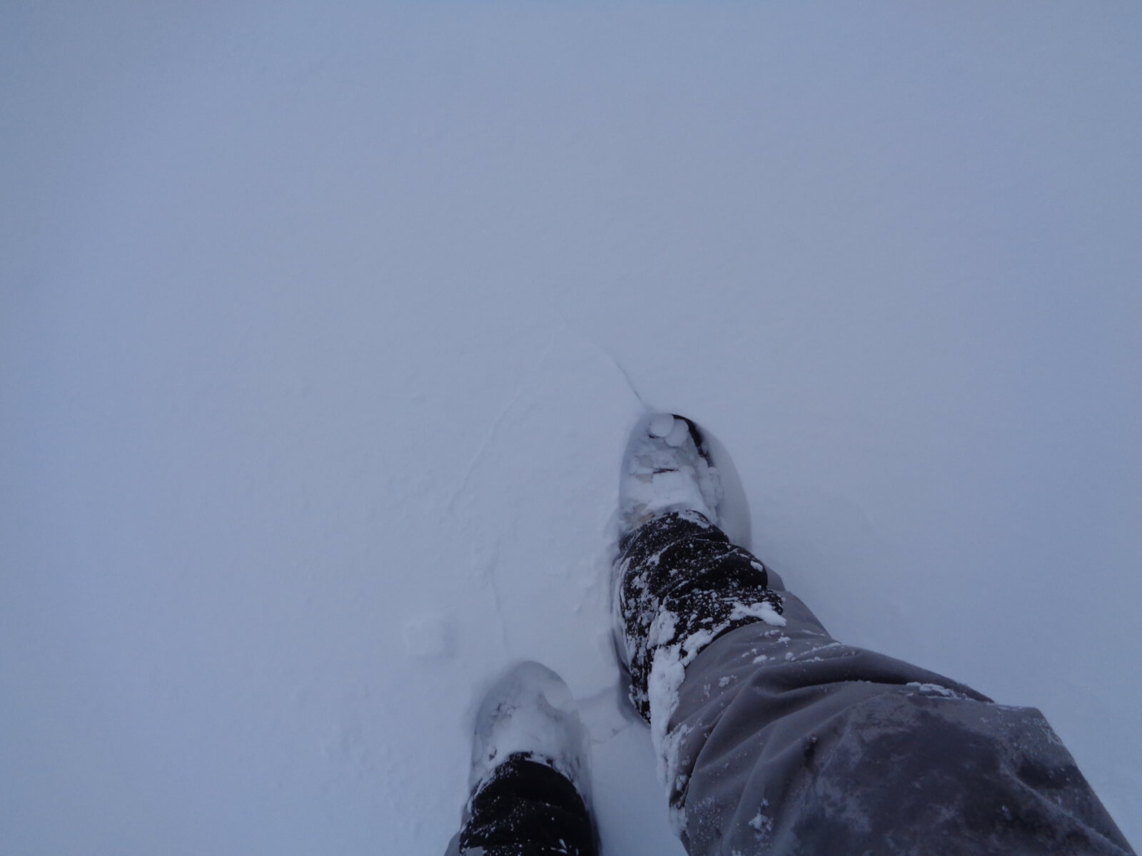 Propagation (cracking) in the fresh windslab on flat terrain around 600m. A sure sign of instabilities within the snowpack.