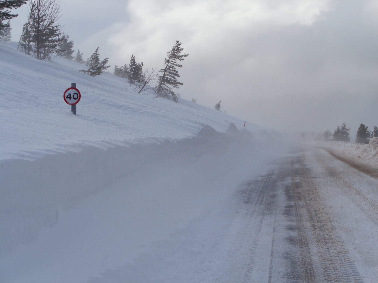 Is that road sign for traffic speed or wind speed?! Photo taken on the ‘link road’ NW aspect 550m. The snow plough had literally just passed and the road was filling in again.