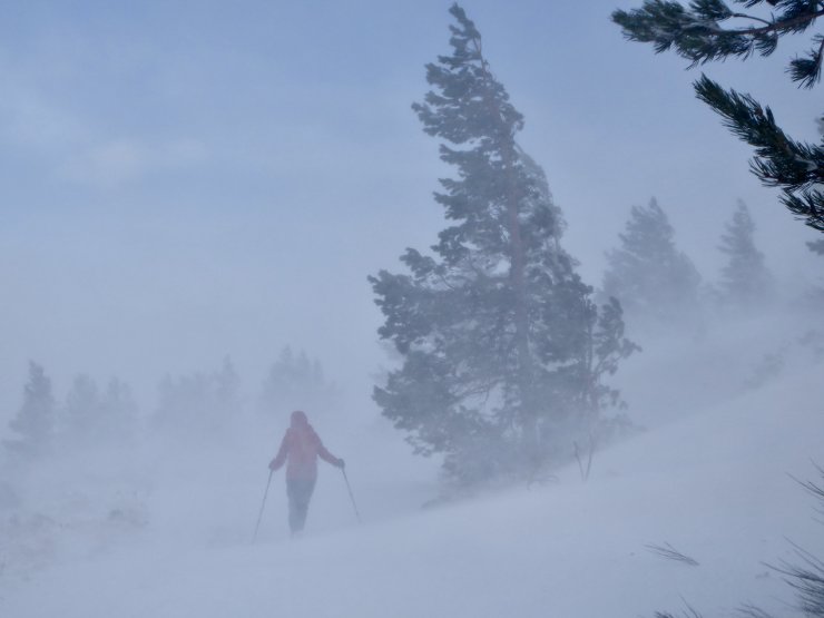 An evening and day of continuous significant drifting down to low levels. Storm force winds from the South-South-East have been accelerating over the plateau ripping out any unconsolidated snow from wind exposed areas and redistributing vast amounts of fresh unstable wind slab in steep lee aspects.  South-South-East winds will continue through the evening and into tomorrow with a slight easing through the day.