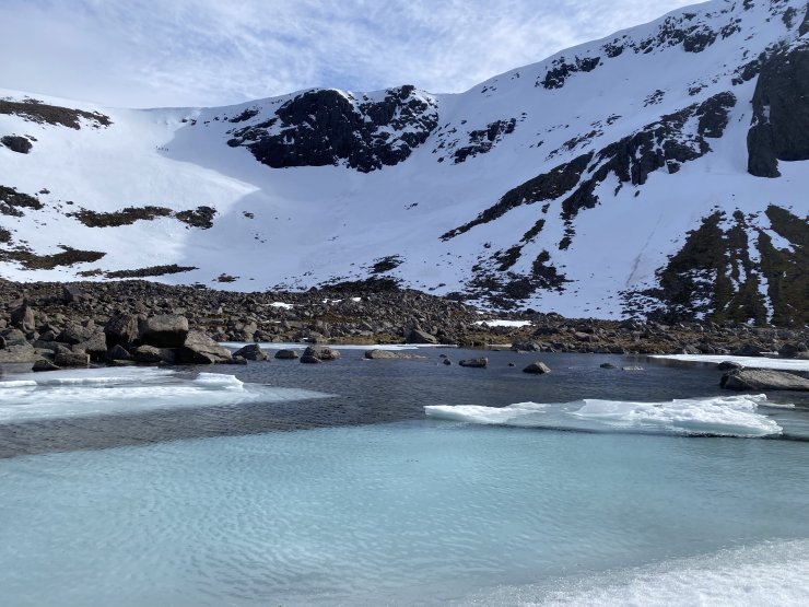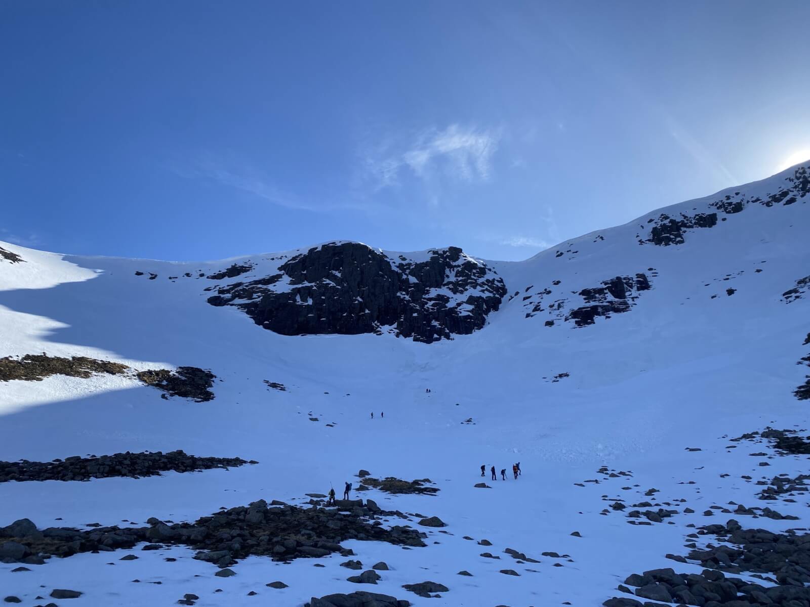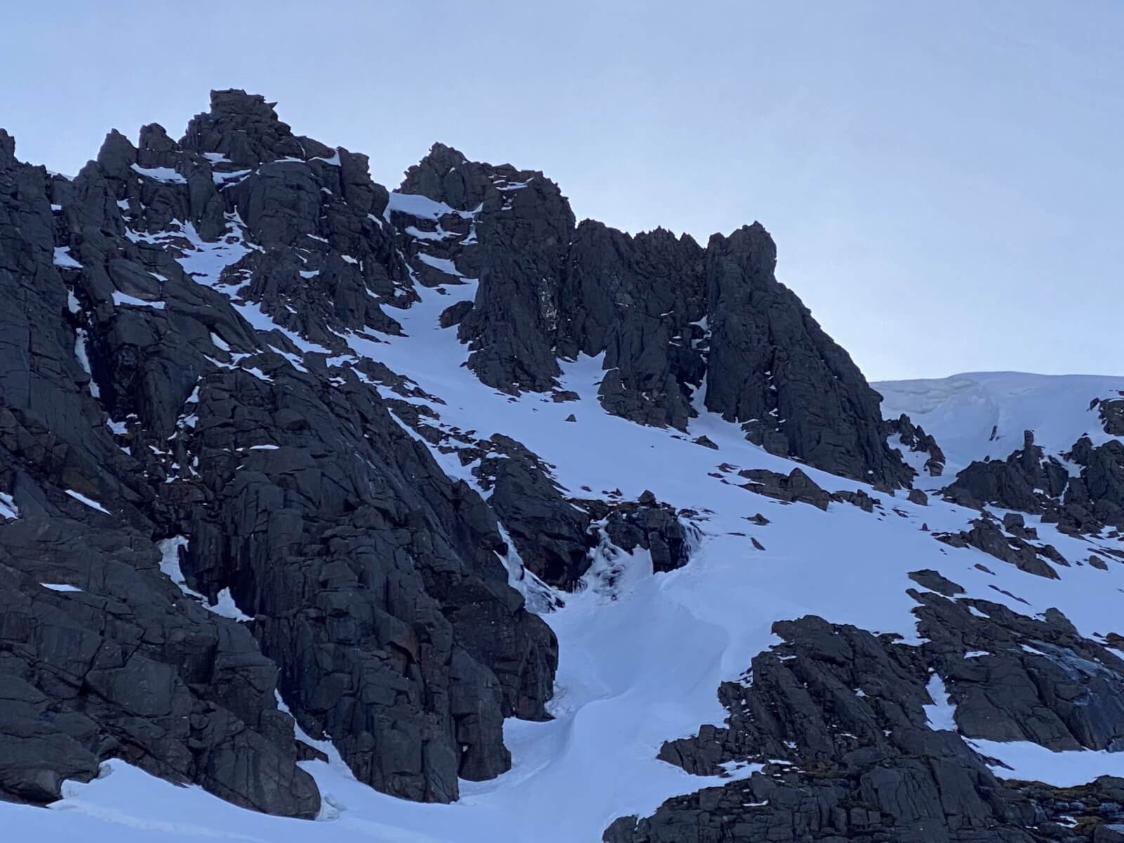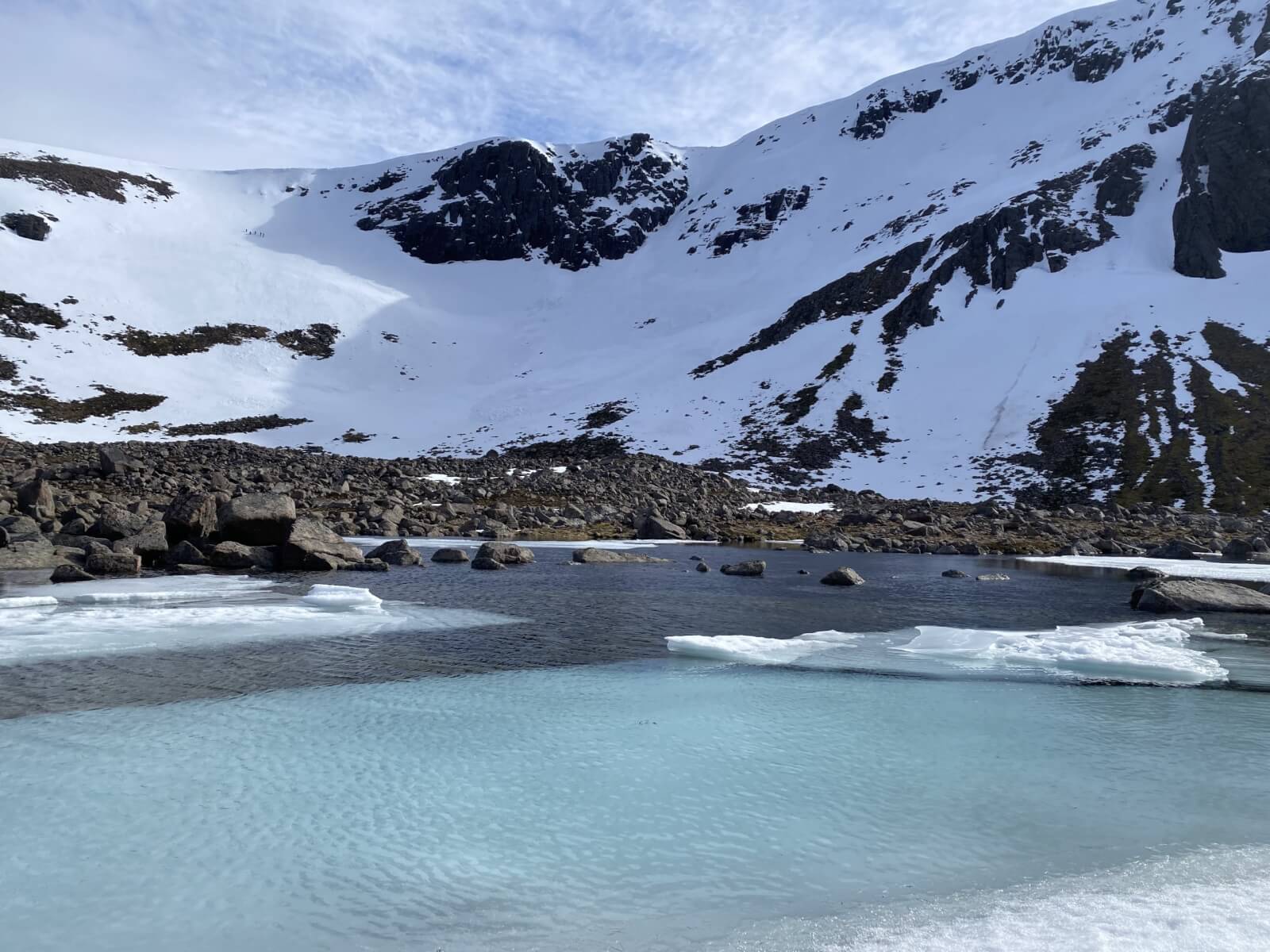 This rock fall on a Westerly aspect happened a couple of weeks ago during a mild spell. One of the larger boulders ran to the corrie floor.