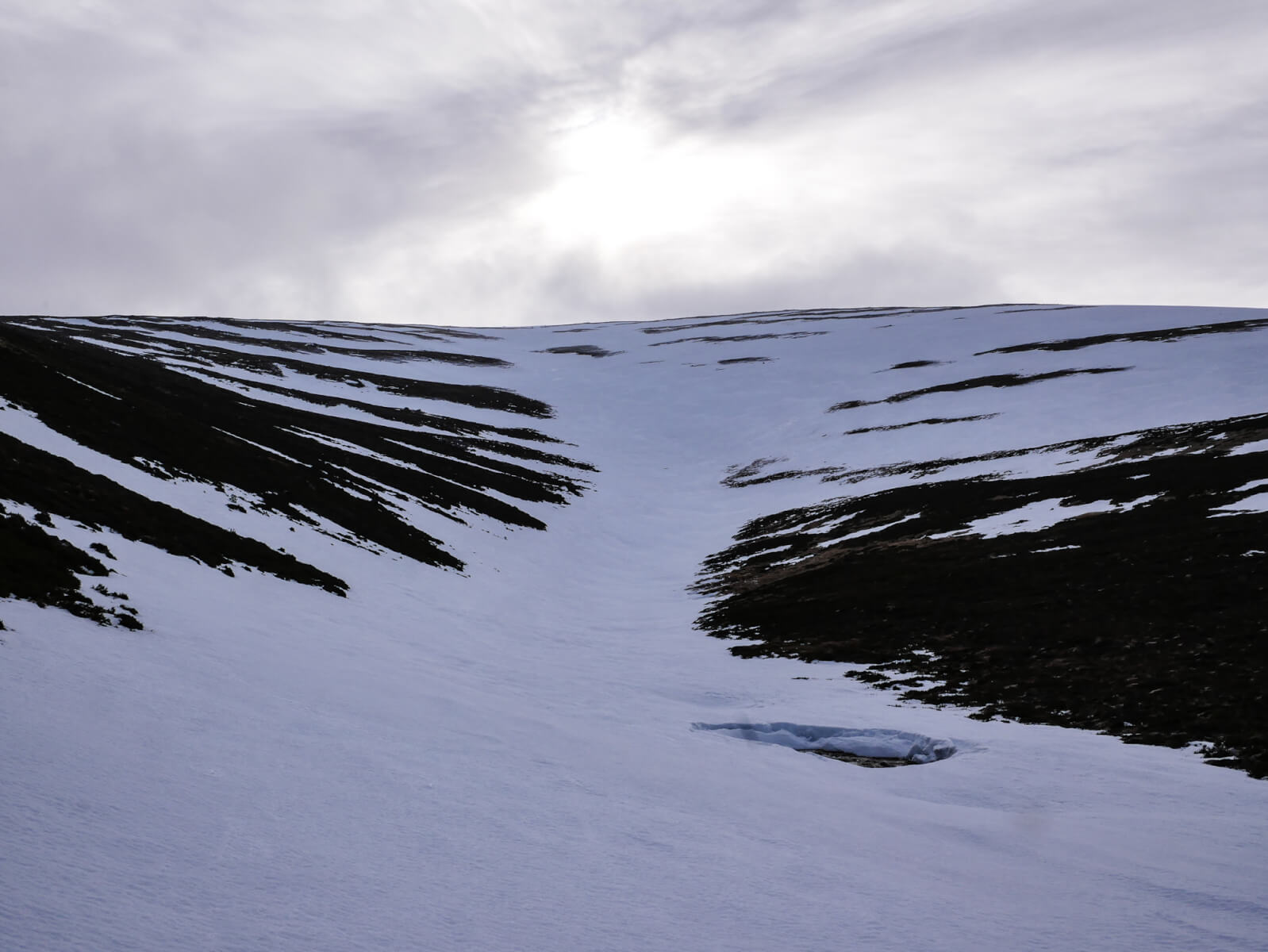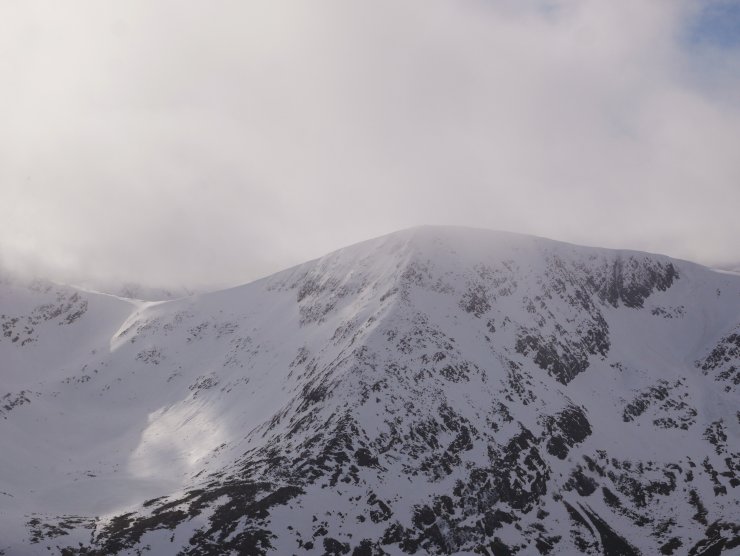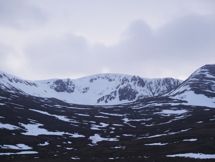 Looking up Coire Gorm on the northern flanks of Sron na Lairige. This snow sure coire is a good way up to Braeriach, and would have been quick in crampons today.