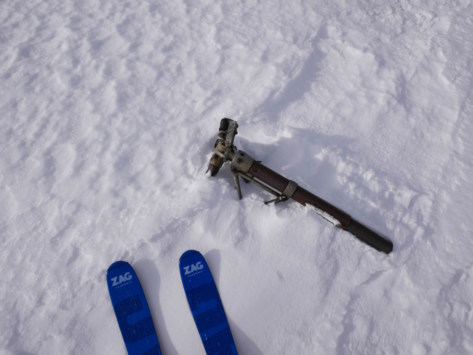 Aircraft wreckage in the bealach between Braeriach and Sron na Lairige. There are actually two crash sites here in close proximity. An RAF Airspeed Oxford which crashed on 12 October 1943 and an RAF Bristol Blenheim which crashed on the 20 April 1945. The wreckage is said to extend from Coire Beanaidh through the bealach into Coire Ruadh to the South-East. I suspect the image may be an undercarriage leg from Airspeed Oxford HM724.
