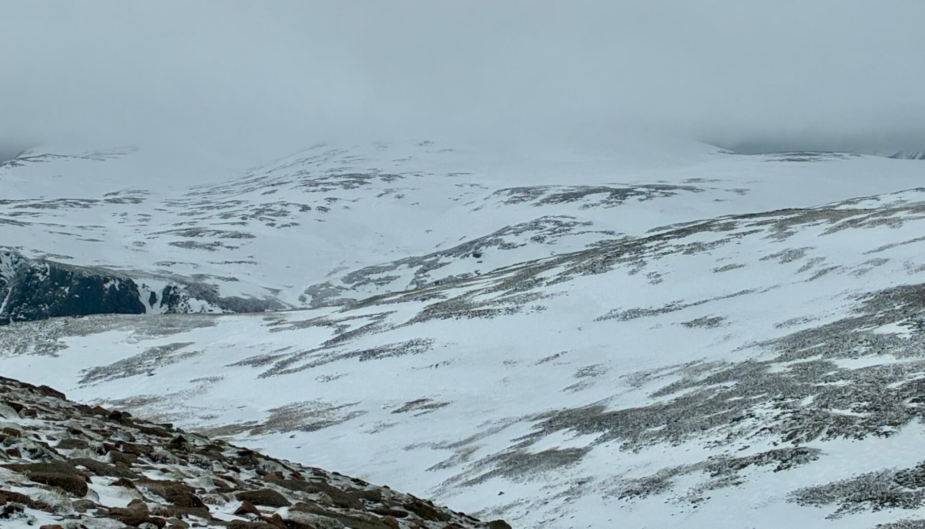 There had been a light dusting of fresh snow during Sunday night which was soon being redistributed onto Northerly aspects in the gale force winds.