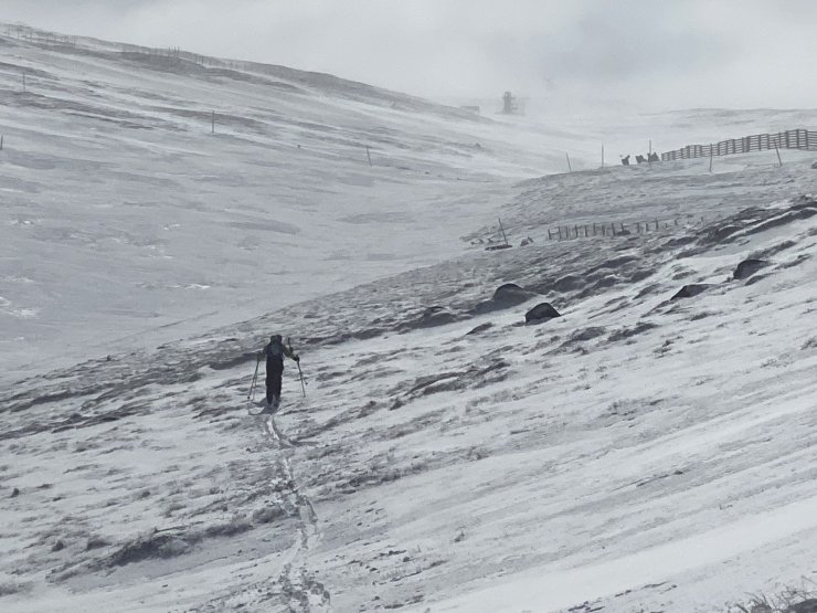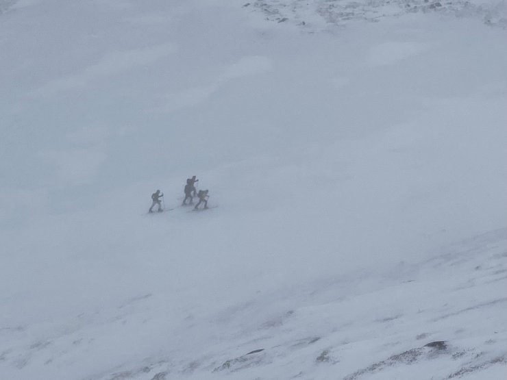 Sunshine, heavy snow showers, gale force Westerly winds and cold temperatures, lows of minus 5 Celsius on the tops. Generally visibility was good but during the squally snow showers visibility turned poor very quickly. Where the old snow lies, wind exposed slopes are very firm and icy or bare. Soft windslab has become deeper and more widespread on lee slopes. More snow forecast over the next 24 hours.