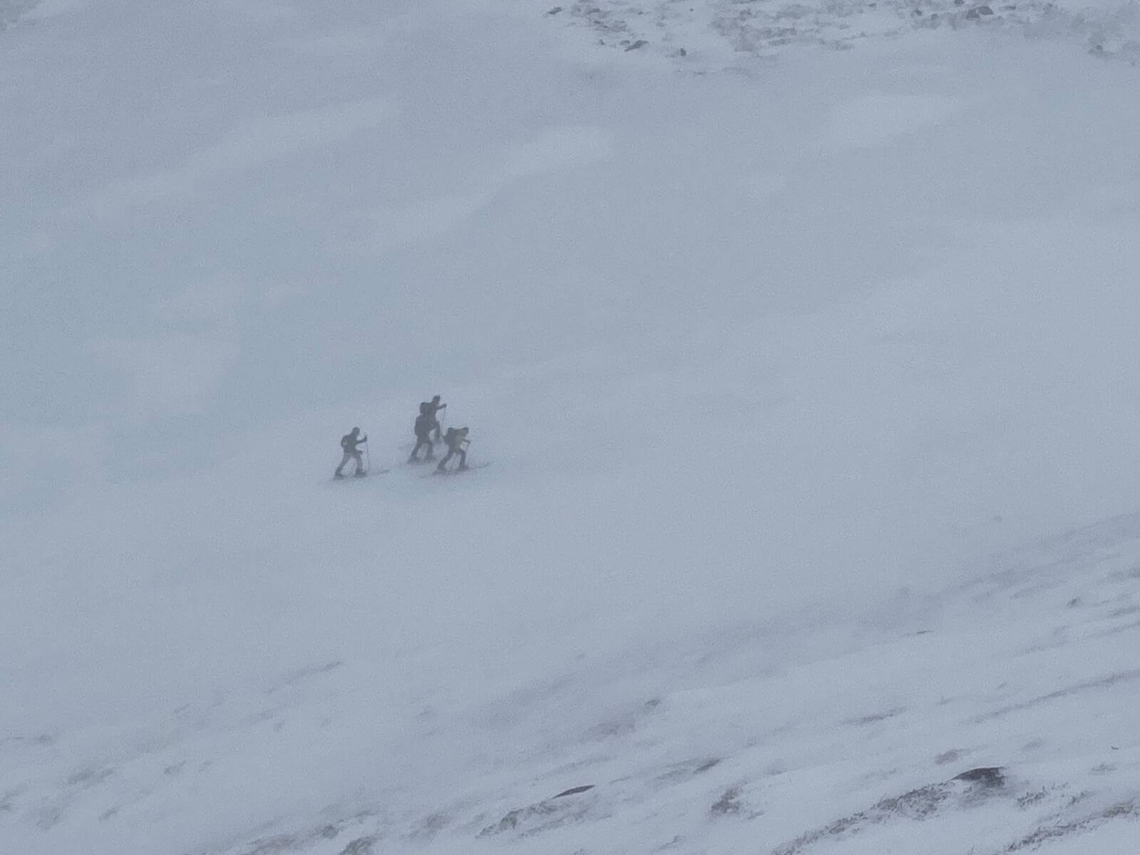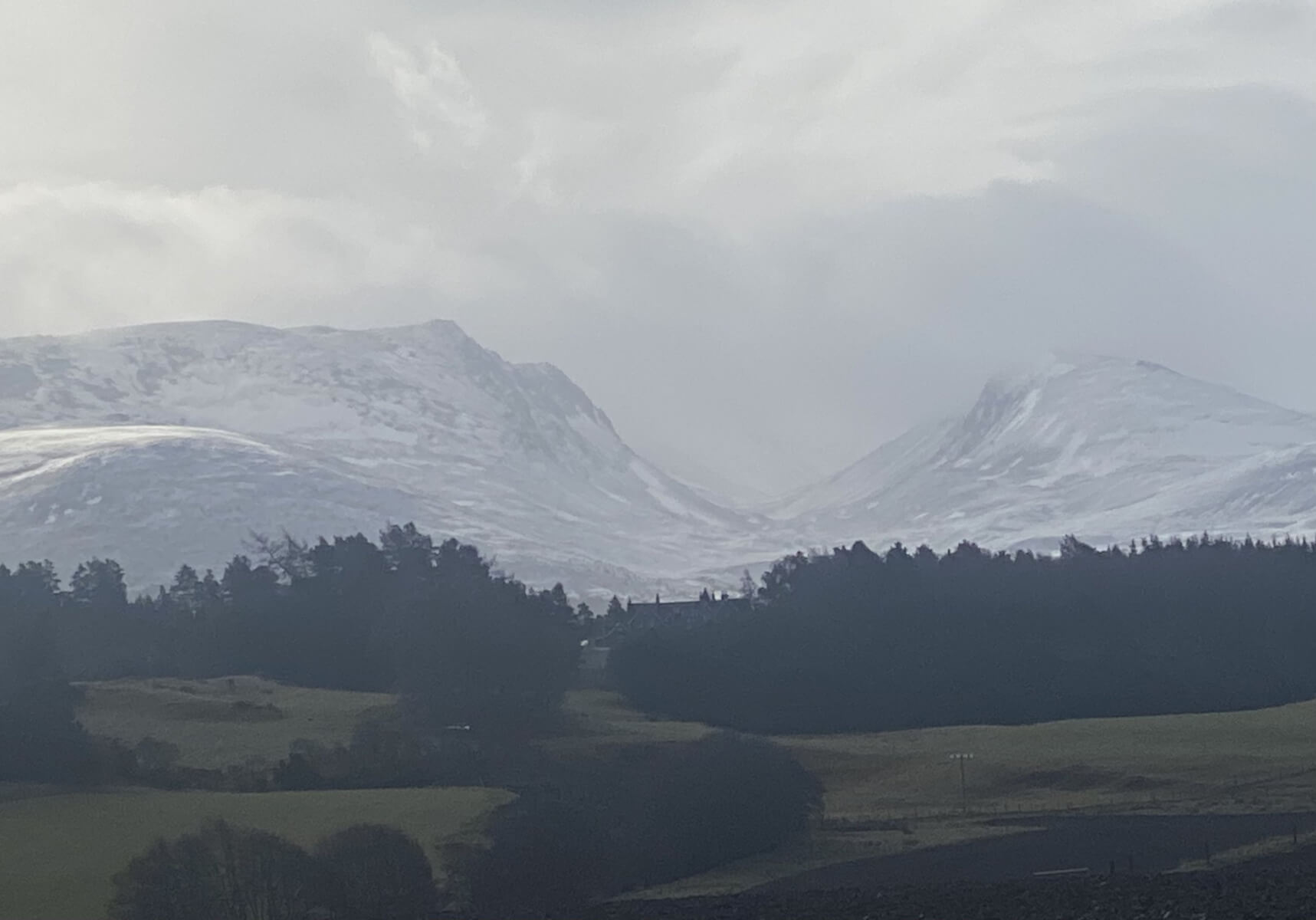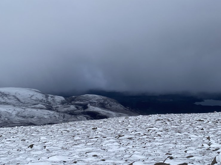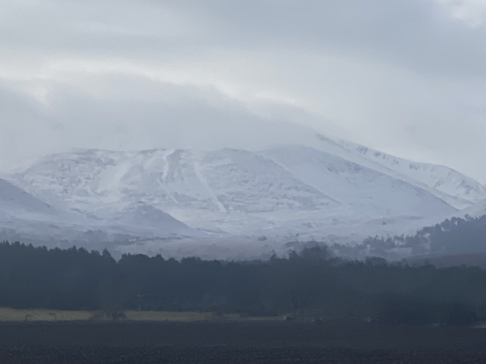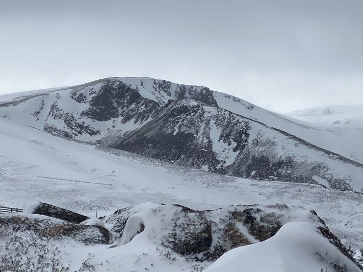 The North facing corries of Braeriach. The strip of snow in the middle is called “The Escalator” a 400 metre shallow gully.