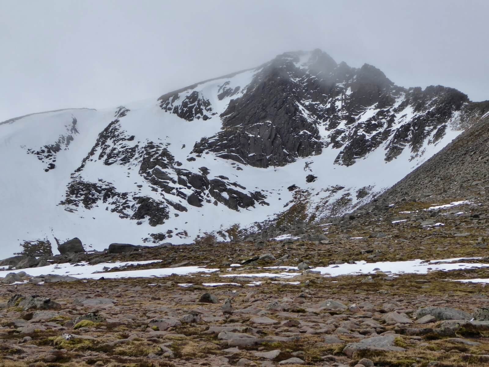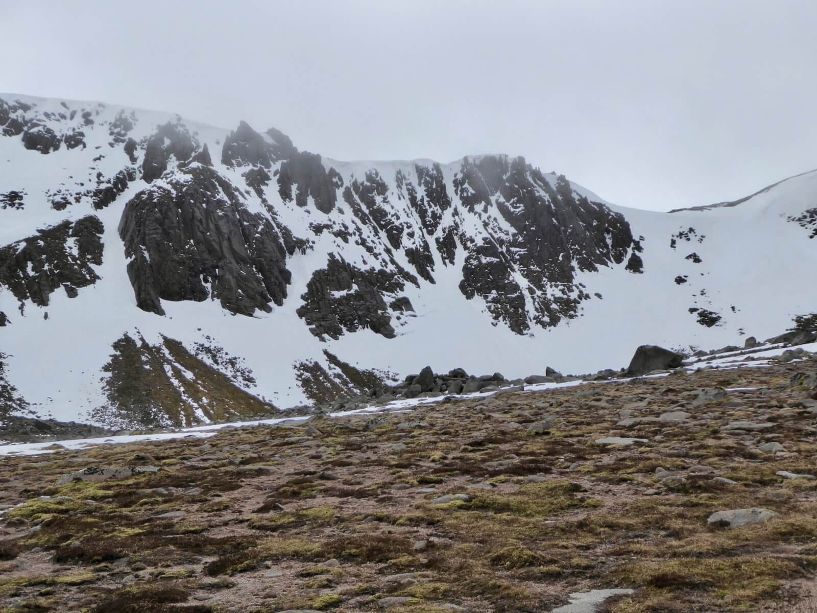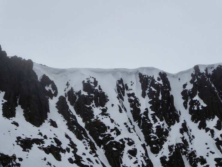 A very different picture today in the Northern Cairngorms. The ongoing thaw has dramatically changed the landscape with the snowpack now soft in most locations. Only in high shady locations does the snowpack remain firm with softening confined to the surface layers. Stability has greatly improved in most locations with weaknesses remaining in specific areas. The mild theme will continue until around lunchtime tomorrow when the freezing level lowers once again and the existing snowpack starts to refreeze. Further fresh snowfall forecasted down to approx 600 meters on Northerly winds so expect a different picture once again post lunch.