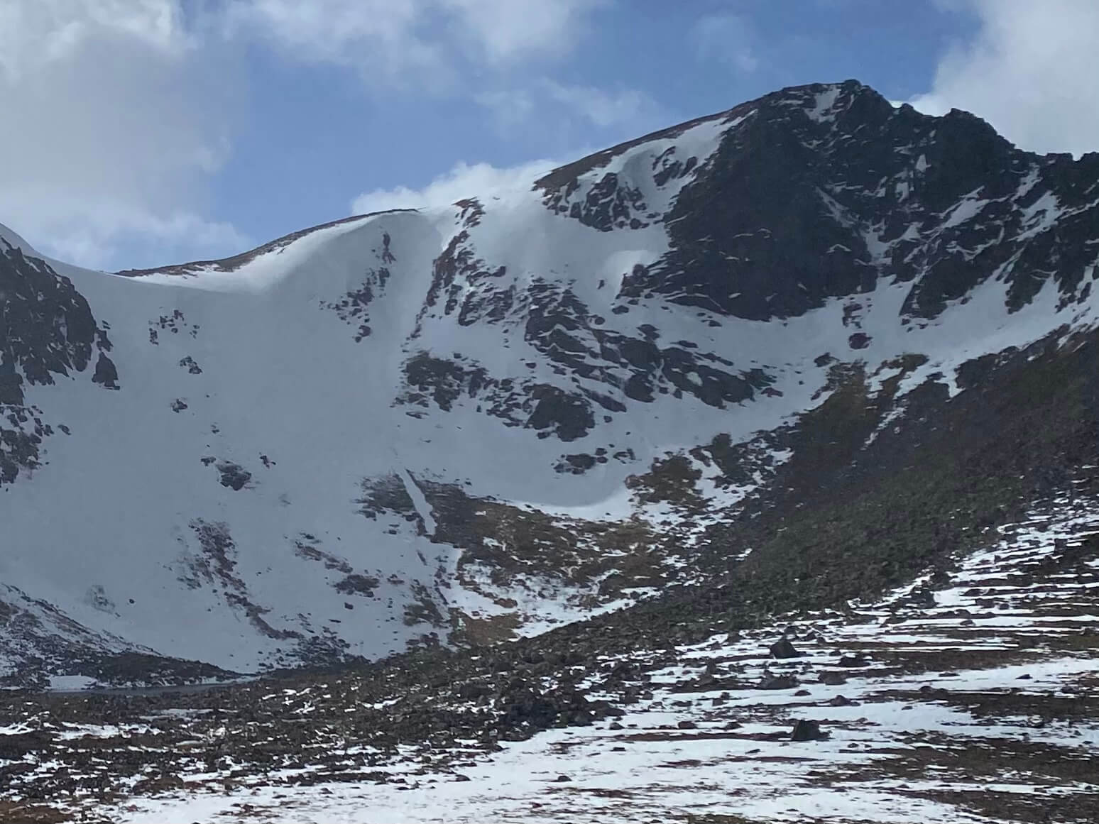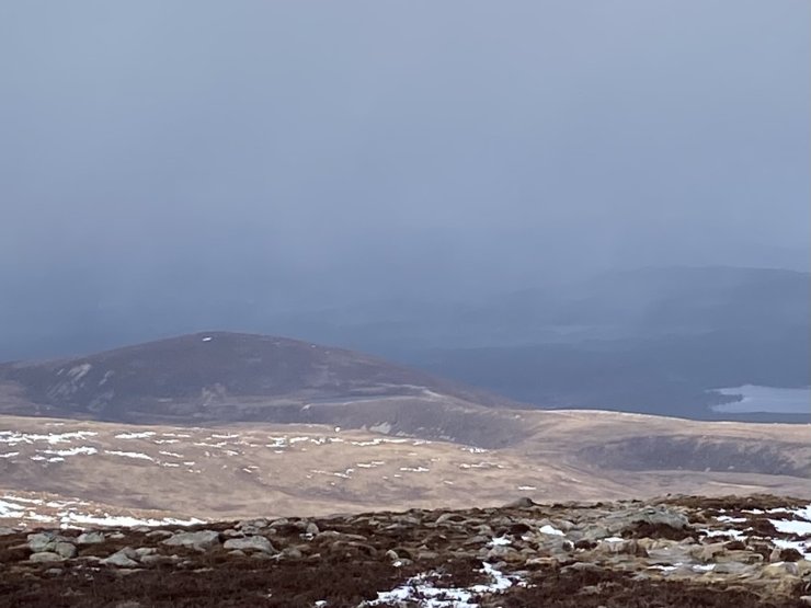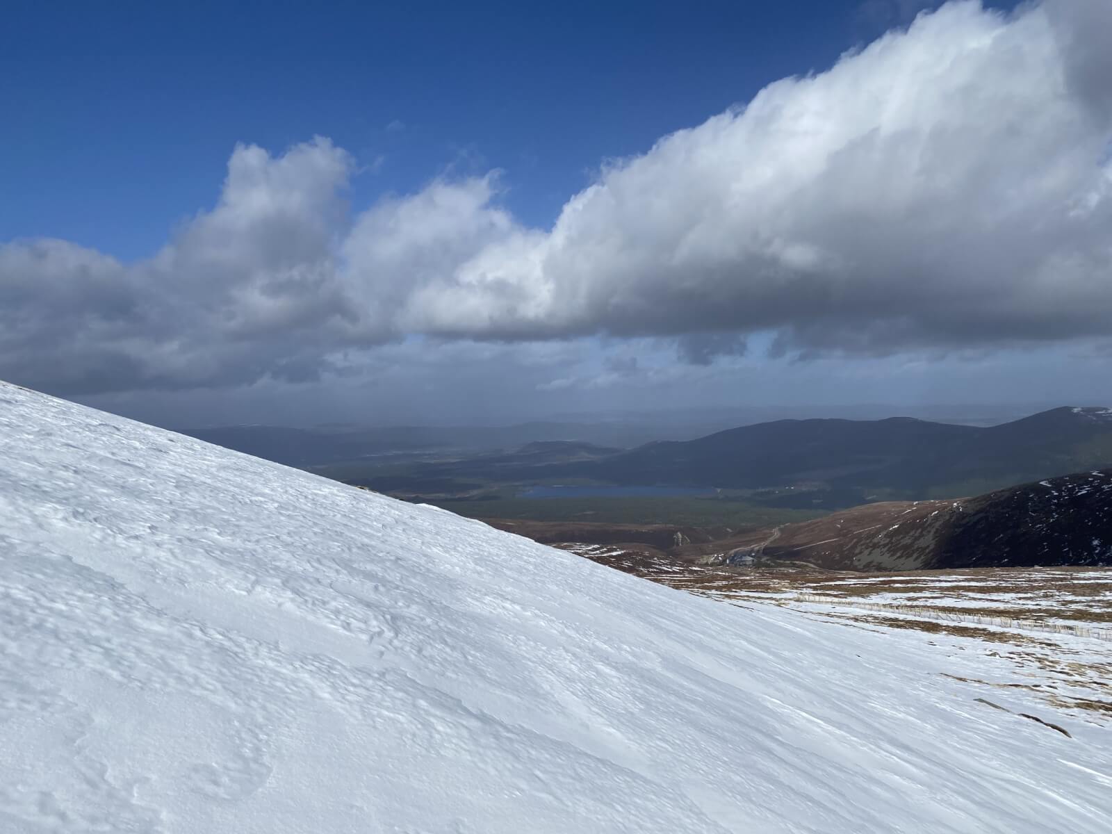After a night of mild temperatures the freezing level lowered back down to 700 metres by early afternoon.  Gusty Westerly winds crossed the mountains with occasional snow and hail showers during the afternoon. Generally the old snowpack is very firm, but where recent accumulations of windslab remain, it was none weight bearing and sometimes deep, but generally this could be avoided most of the time. Below coire levels, the paths are mostly clear of snow.