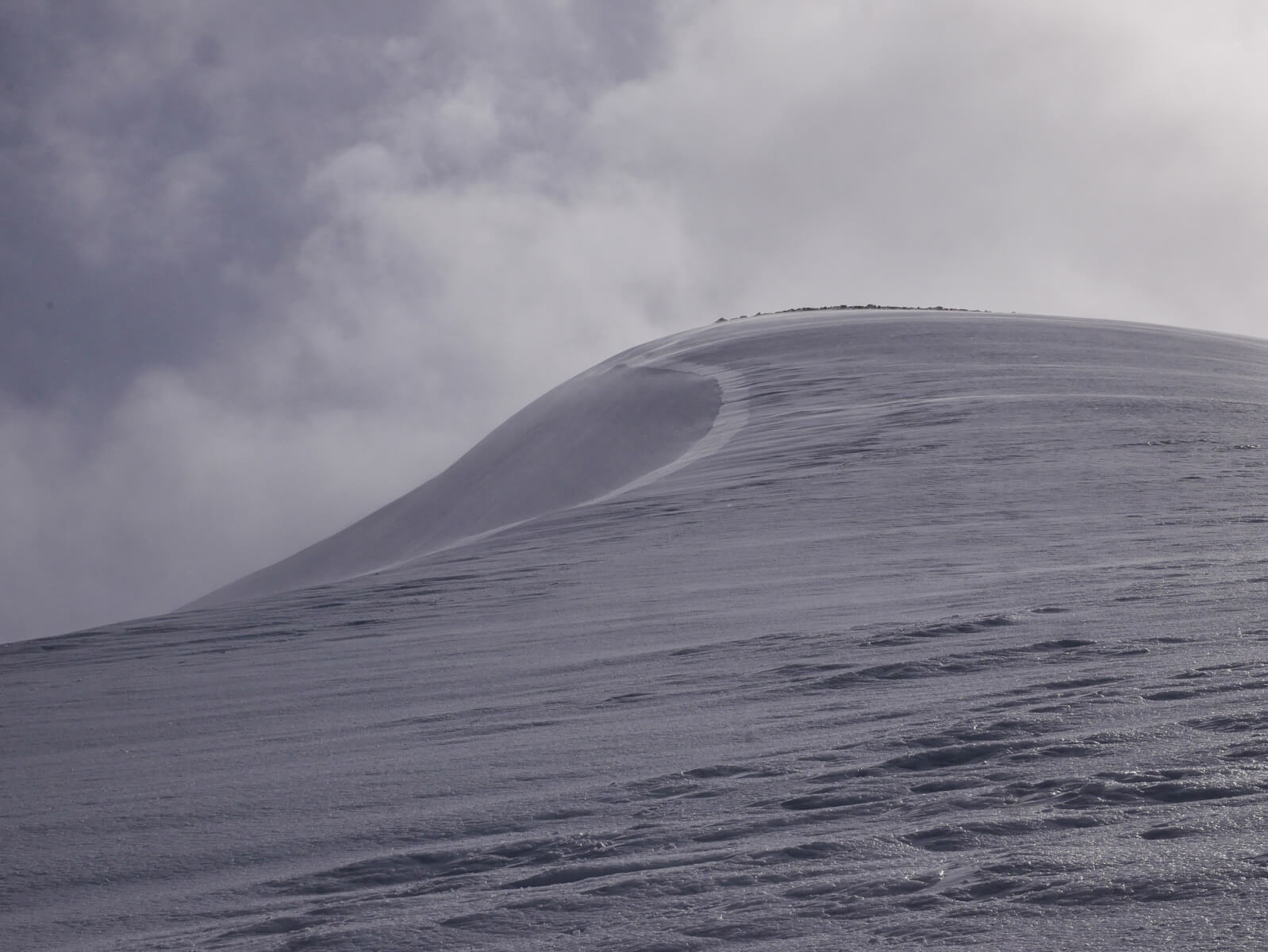 Another day designed to readily build windslab. Significant drifting was present all day, with tell tale wisps of blown snow around the coire rims and in steep wind sheltered locations.