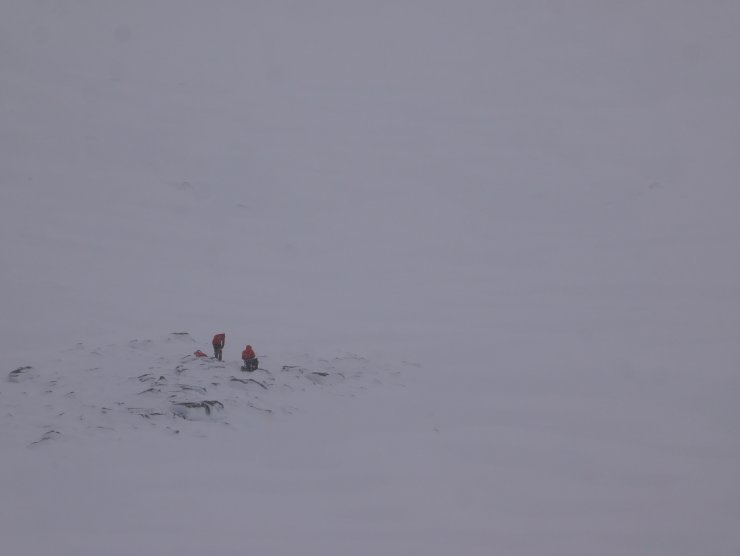 A party gearing up in Coire a t-Sneachda. Another challenging day in the Northern Cairngorms, with gale force winds.