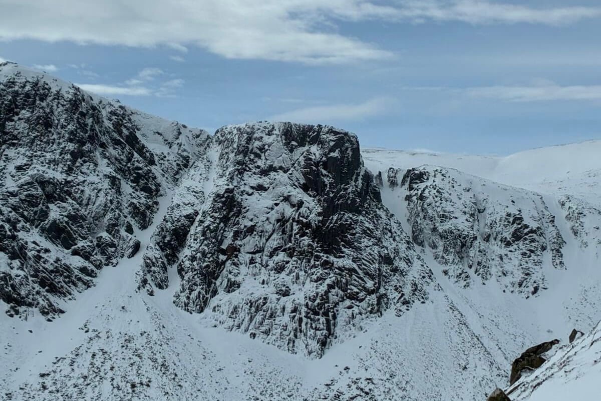 A direct view of The Shelter Stone, Carn Etchachan to the left.