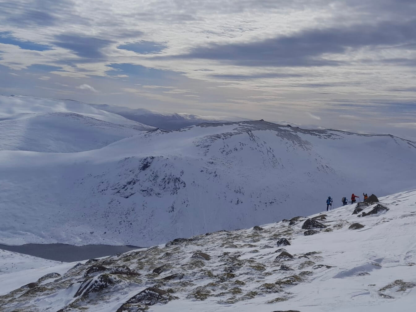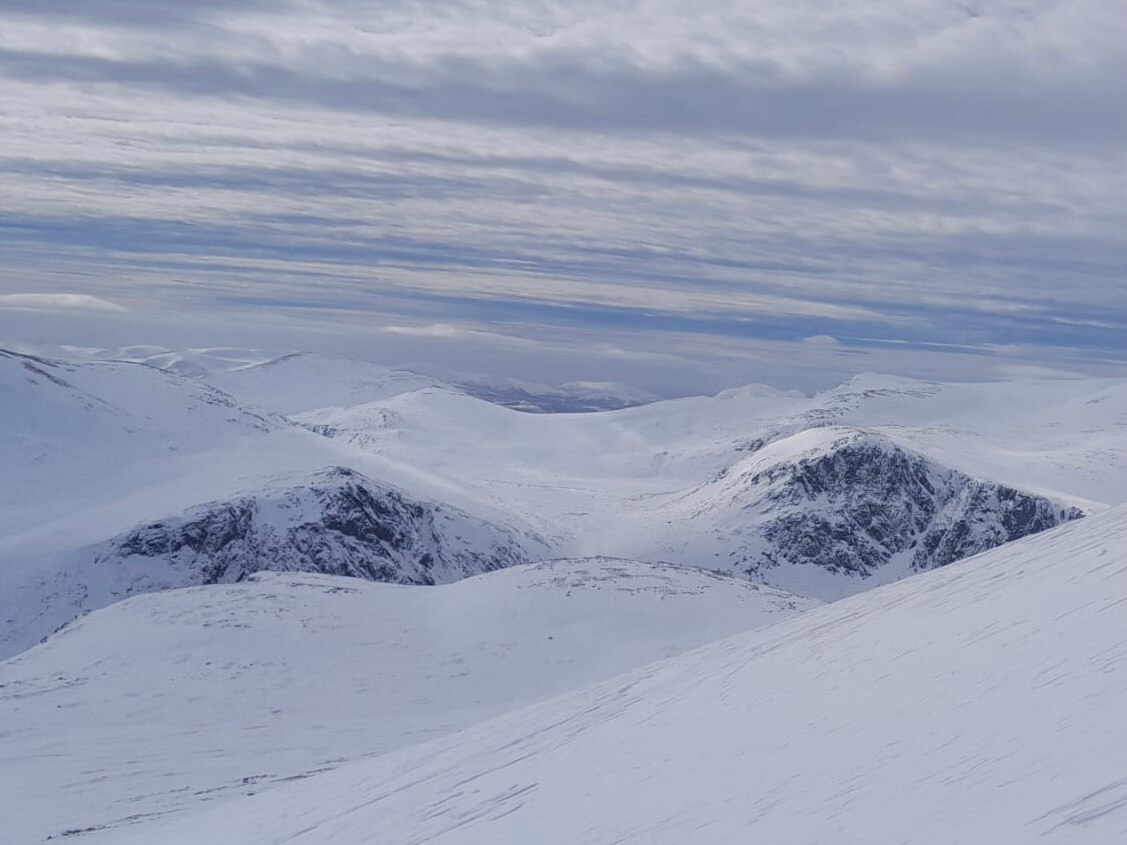 A stunning day in the Cairngorms with lighter winds and slowly rising temperatures. It was a busy day on the hill with many folk ski touring and generally enjoying winter conditions.  All change tomorrow with the onset of mild temperatures and gale to storm force Southerly winds. Thanks to Cairngorm ski patrol for the Bulk of today’s photo’s.