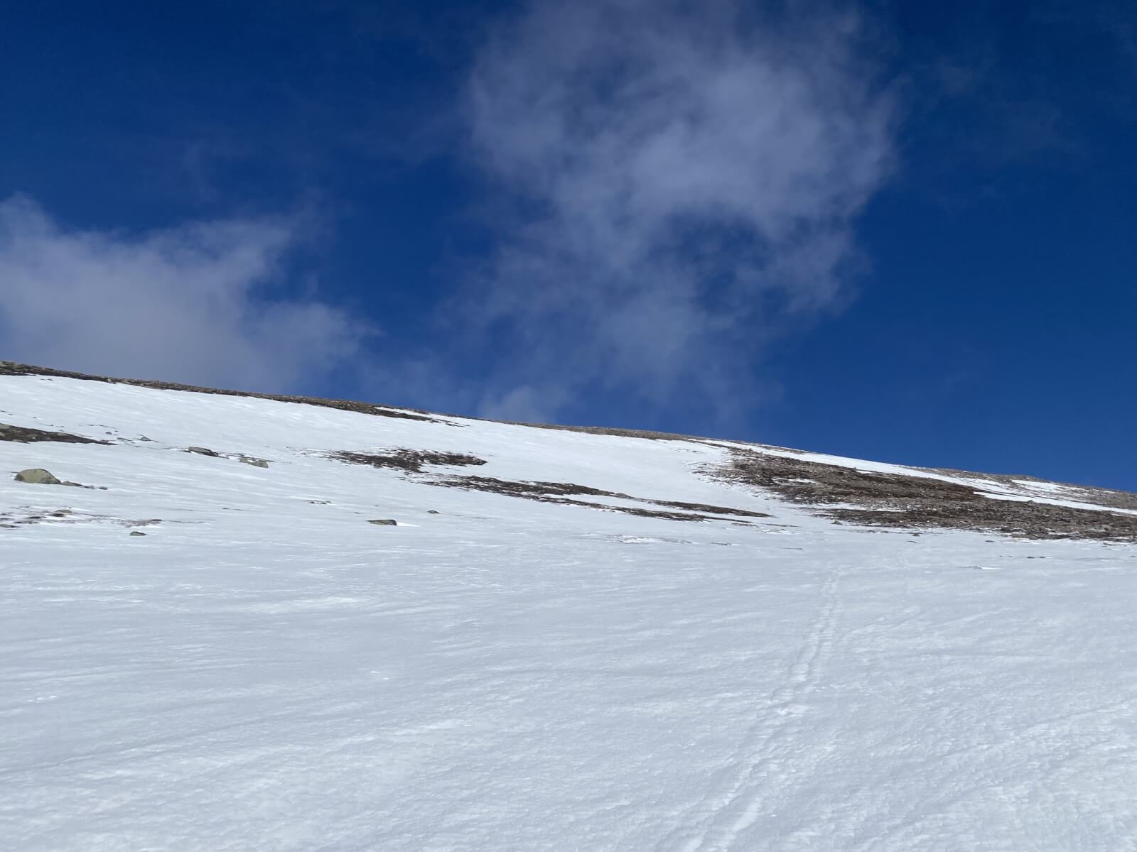Cold temperatures with a dusting of new snow above 1000 metres. The snowpack is most widespread above 1000 metres around coire back walls and the plateau.  Sun exposed slopes were notably softer than North facing slopes which were very firm with serious run out potential.  Snowfall on gale to storm force winds expected over the next 24 hours.  This will be heaviest during the night, winds are expected to ease on Saturday.